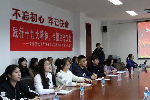 首先,哔咔漫画 的五位学生党员、团员代表首先分享了他们关于十九大精神的学习体会。李明潞同学结合所学专业阐述十九大报告中的文化内涵;罗晓宇同学联系自身海外实习经历,探讨传统文化如何在新时代的更好的继承与发展;边玉洁同学呼吁当代青年做好生态文明建设的主力军,践行生态文明,传递青年力量;白然同学不忘初心,从总书记谈话中汲取拼搏奋进的精神动力;最后郑朝颖同学深情呼吁“作为新时代的大学生,我们要坚定理想信念,志存高远,脚踏实地,博览群书,独立思考,勇做时代的弄潮儿。”