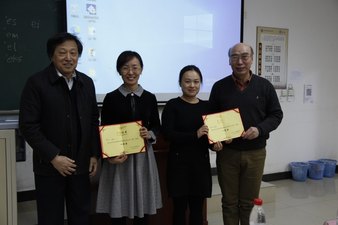此次大赛,谭宇菲和戴新月获得一等奖,督导专家孙国平和焦志勇为她们颁奖。另有12名教师分获二等奖和三等奖,院长石刚、党总支书记冯博和各系部主任分别为他们颁奖。