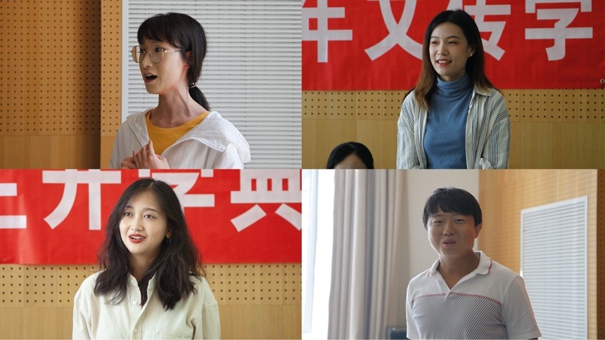 在新生介绍环节,2020级新生刘钰、刘政钰、陈琬等15名同学作了自我介绍和学习规划等说明。