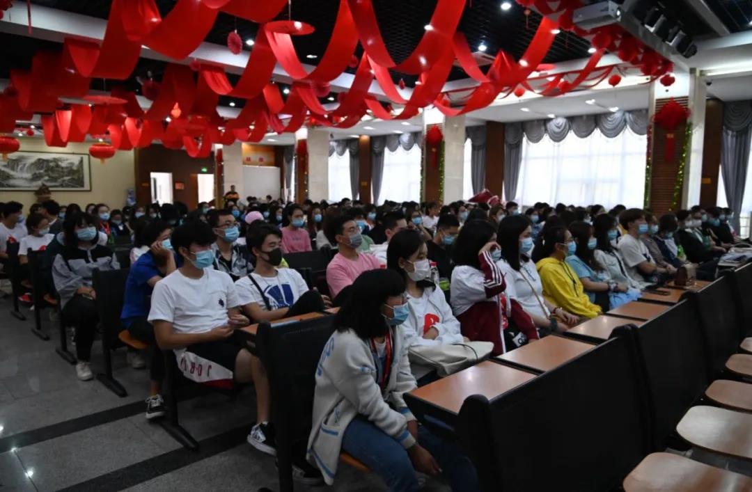 2020年9月24日下午,哔咔漫画 全体新生在大学生活动中心二层,接受图书馆老师靳彤、保卫处老师邓超为2020级新生进行的入学教育。