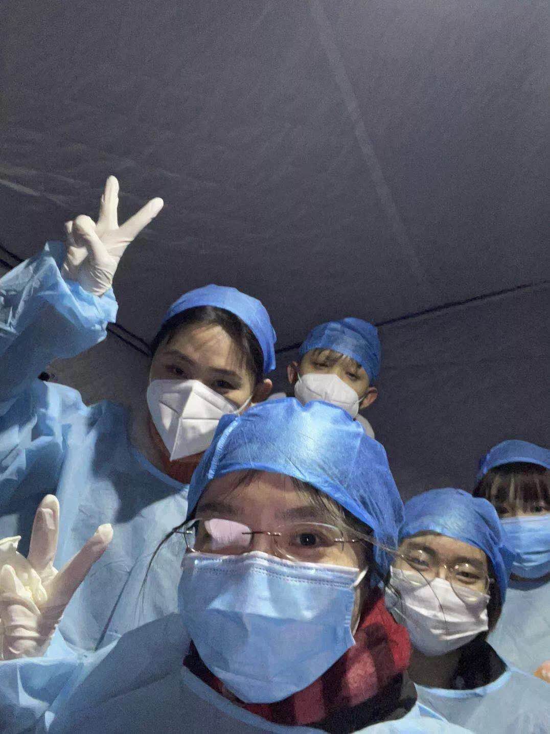 我看到医务人员穿着厚重的防护服在检测点一坐就是一天,哪怕不吃不喝,也要尽可能多的为居民进行检测;看到社区工作者耐心的协调等待检测的群众,教他们预约检测、提醒大家保持间距;看到学校的老师凌晨还在组织同学们的分工,清晨又最早到达,时刻关心、牵挂志愿者们的生活和安全保障;看到并肩战斗的小伙伴们有的五点就从家出发,有的凌晨十二点多才结束一天的工作......所有人都在自己平凡的岗位上默默付出着、奋斗着,在冬日里,散发着炽热的温度,散发出耀眼的光芒。
