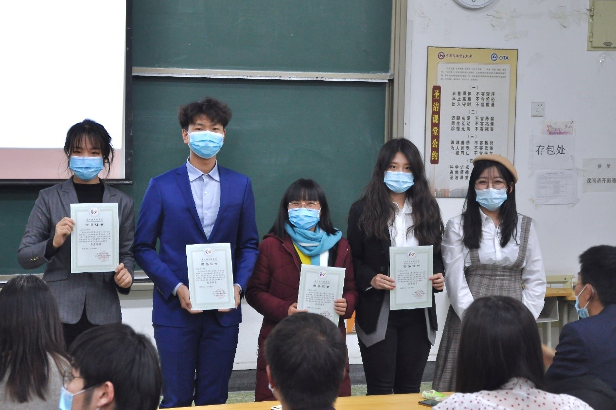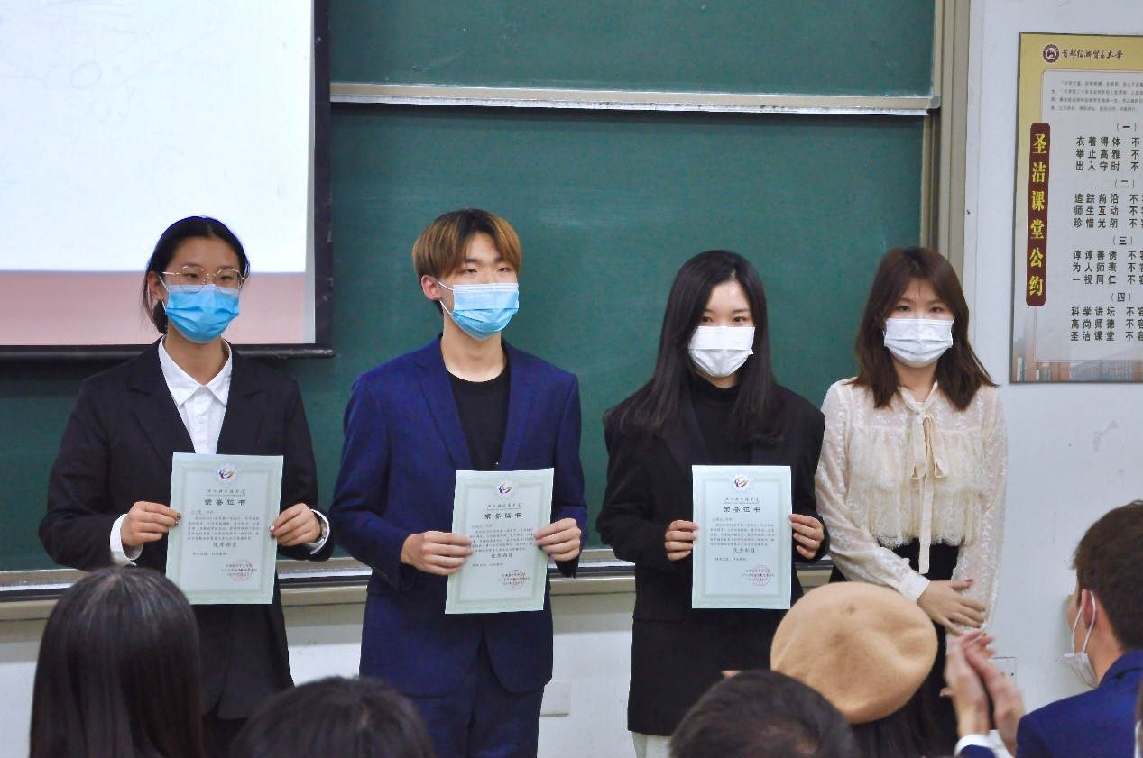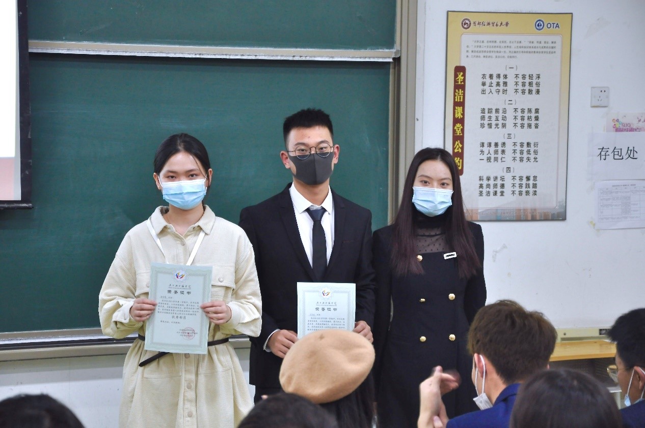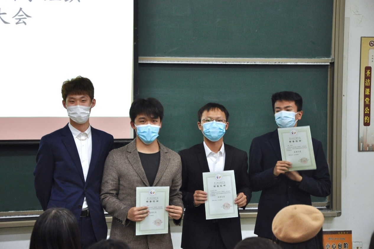大会第二项,由党总支副书记高琼、分团委书记郭奕彤和兼职辅导员贺琦颁发本学期优秀部长证书。本学期各部门工作进展顺利,完成度高,这与各位部长的辛勤付出是分不开的,在此对优秀部长进行表彰。