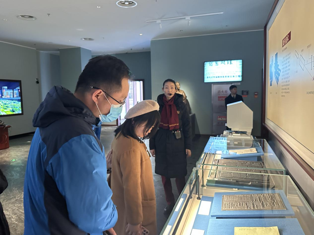 进入主展馆,第一单元是“版本的形态”,从陶石兽骨到金属竹木,从实物纸张到虚拟数字,版本的千年演变直观呈现。第二单元“版本的制作”中雕版印刷与活字印刷的文物,生动展现了我国古代印刷技术的卓越成就,讲解员也着重讲解了其中蕴含的工匠精神。参观过程中,师生们始终保持着高度的专注,认真倾听讲解,不时在展柜前驻足凝视,有的拿出手机记录珍贵瞬间,有的低声与身边同伴交流感悟,现场学习氛围十分浓厚。