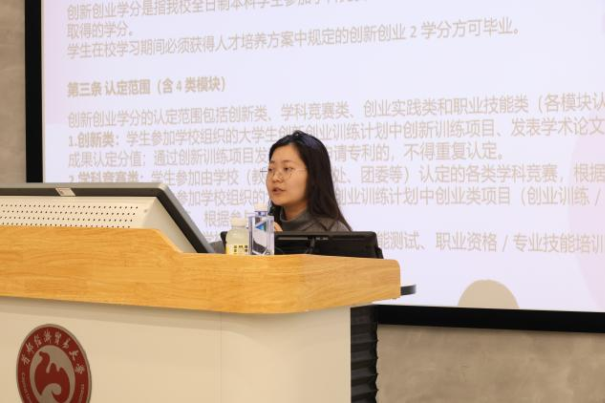 会议伊始,辅导员曹瑜围绕“第二课堂学分构成与认定标准”展开系统讲解。她详细介绍了社会实践、创新创业、第二课堂等模块的学分构成与认定标准,帮助同学们明确毕业资格的具体要求,并鼓励大家提前规划、积极准备,为顺利毕业打下坚实基础。