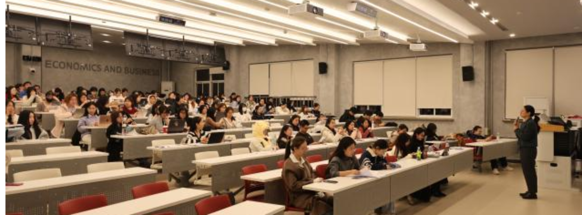 最后,学院党委副书记朱红霞围绕“多元化毕业去向与发展路径”为同学们提供了针对性的指导建议。她分别对计划就业、境内升学以及出境深造等不同方向的同学提出了具体建议,并重点介绍了学院为促进2026届毕业生就业所采取的一系列举措:一是联合学校举办2025年秋季双选会,汇聚优质岗位资源;二是依托校企合作平台启动岗位内推机制,拓宽毕业生就业渠道;三是成立就业指导团队,根据前期调研结果开展数智化技能培训,切实提升同学们的就业竞争力。