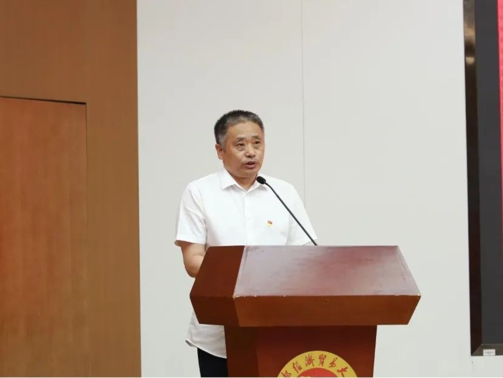 党委书记石刚发表致辞并宣布典礼开始。他首先向2025届全体毕业生致以热烈的祝贺。回顾同学们从初入校园到专业实践、科研突破的成长历程,他寄语毕业生:心系祖国,以“国之所需”为使命,讲好中国故事;心怀梦想,以勇敢执着的态度直面挑战;守住良知,在流量时代坚守职业底线;永葆热情,做终身学习者,在创新中实现价值。最后,他表达了对毕业生的美好祝愿,希望他们“常回家看看”。