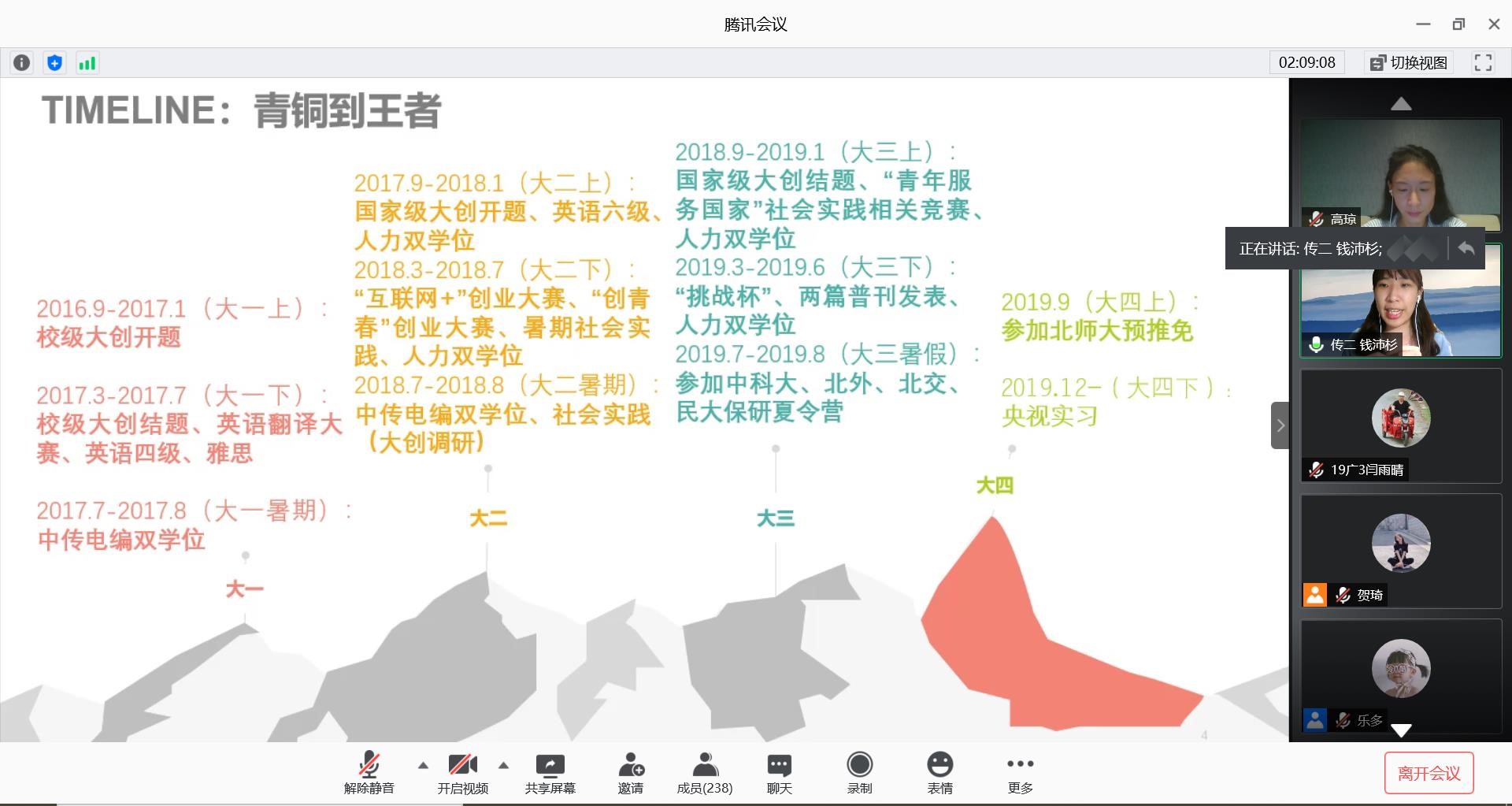参加本次社会实践与学科竞赛分享会的人员有:哔咔漫画 党总支副书记高琼、专职辅导员郭奕彤、专职辅导员尹可心、兼职辅导员贺琦、2020届传播学专业毕业生钱沛杉和学院各年级生同学。本次分享会由学院分团委社会实践部颜丽郦主持,本活动为哔咔漫画 “扬帆未来,筑梦远航”生涯规划系列活动之一。