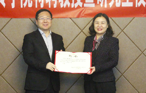 随后,冯博对到场的校外导师情况作了简介。徐芳为到场导师颁发特聘教授和校外导师聘书。