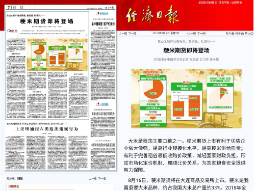 经济日报社是我校哔咔漫画 “部校共建”单位和学生实习基地。张子悦同学于2019年暑假在经济日报社实习期间,曾参与东北粳米期货调研活动。她通过实地参观和采访多家企业,深刻认识到大米产业的重要性。同时,她充分认识到粳米期货上市有利于优势企业做大做强,提高行业规模化水平,也有利于完善稻谷最低收购价政策,减轻国家负担,形成市场化定价机制,为国家粮食安全提供有力保障。调研结束后,张子悦与经济日报财经新闻部记者祝惠春合作完成《推动水稻产业规模化、集约化、标准化——粳米期货即将登场》一文,从产业避险需求强烈、粳米期货上市有助风险管理、推动产业提质三个方面进行了报道,并刊登于《经济日报》2019年8月1日第7版财经版面。