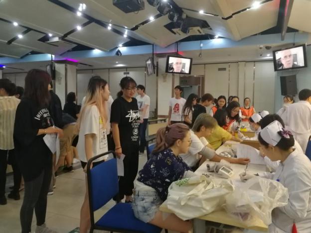 上午八点,献血正式开始,同学们按照流程有序进行:填写并上交申请表、抽血化验、正式献血。按照医务人员的要求,同学们认真填写了相关信息,进行血样采集和身体检查。