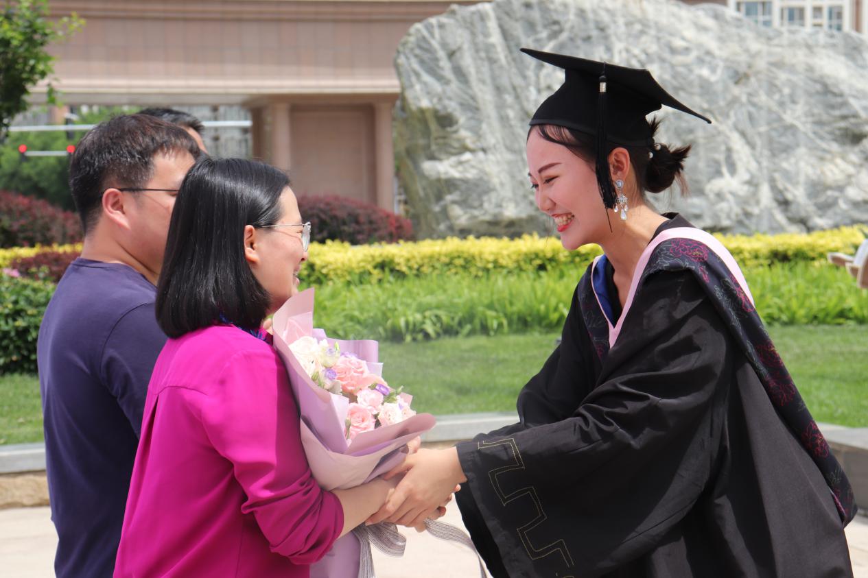 从毕业生向老师赠花致谢到有序站队拍照,从全体合照到各班合照,整个毕业照拍摄过程顺利进行。