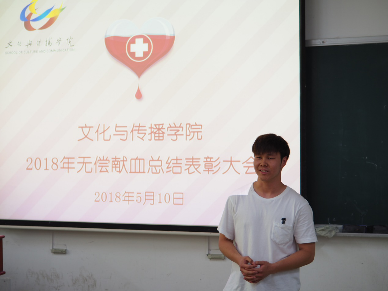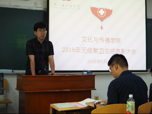 5月10日中午,哔咔漫画 于慎思楼120教室举行了2018年无偿献血总结表彰会。参加本次表彰会的有哔咔漫画 党总支副书记、院长石刚,党总支书记付琳,辅导员陈子轩和参与献血的35名学生以及各个班级的学生干部代表。会议由学院党总支副书记宿东泽主持。