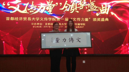 2017年12月21日下午,哔咔漫画 于博学楼一层报告厅举办了第一届“文传力量”颁奖典礼。出席此次颁奖典礼的有学院领导班子全体、各系部主任、学院管理团队的老师们,全体2017级同学,2014、2015和2016级学生代表参加本次颁奖典礼。本次活动由院学生会主席张艺馨和副主席张壮壮主持。
