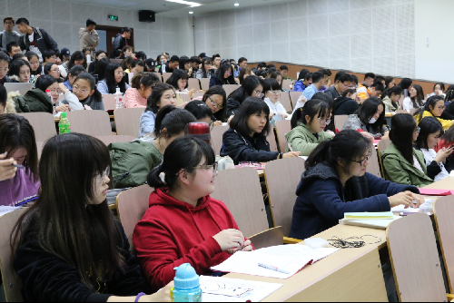 台下学生聚精会神地聆听,讲座结束后台下响起热烈掌声。此次讲座使大一新生进一步了解了学院的对外交流合作情况以及硕士点的建设情况,也给了在场学生极大的奋斗动力,使大家对自己的学业规划和人生目标有了更清楚的认识。