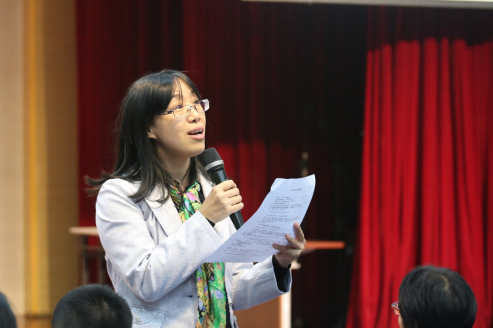 四组参赛队伍的表演全部结束后,经评委们的讨论分析,汉语言文学系教师彭利芝作为评审代表宣布名次:第二组摘得了桂冠,第三组荣获第二名,第一组和第四组并列第三。除此之外,彭利芝还针对各参赛队伍的表现进行了分析与点评。