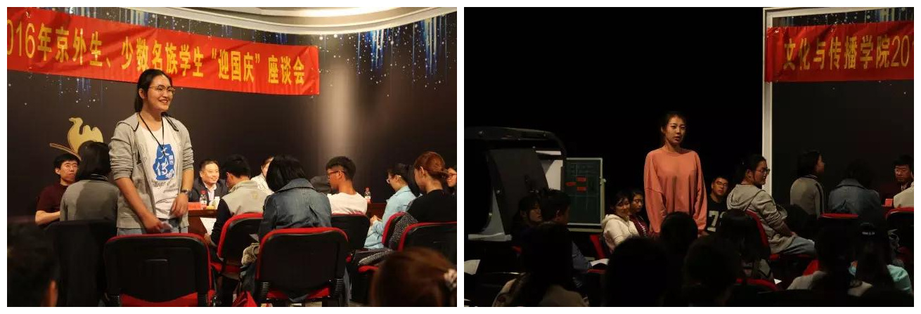 9月29日中午,哔咔漫画 领导班子和学生工作办公室的全体老师们在人文与传媒实验中心,与2016级全体京外生和少数民族学生举行了“迎国庆”交流会。