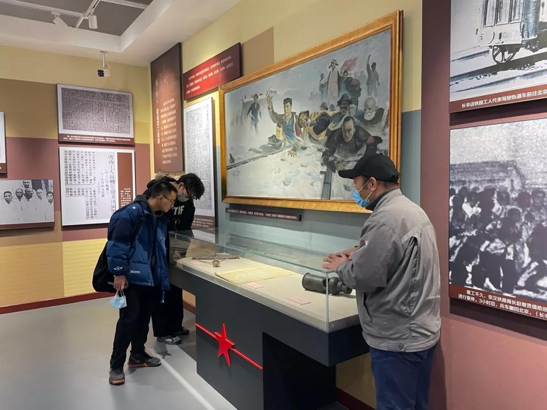 长辛店革命旧址展览馆共有8个展室,室内放置的展柜中,陈列着“二七”革命斗争的珍贵史料和文物,柜外陈设着大件文物、油画和模型等,这里收藏和保存着的京汉铁路工人革命斗争实物,既是长辛店“二七”大罢工和工人运动的纪念地,又是对青少年进行革命传统教育的重要场所。本次参观正值馆内“北方的红星——长辛店与中国工人运动”专题展,主要展现了五四运动前后发生的革命故事,多件在革命时期的珍稀文物展出。