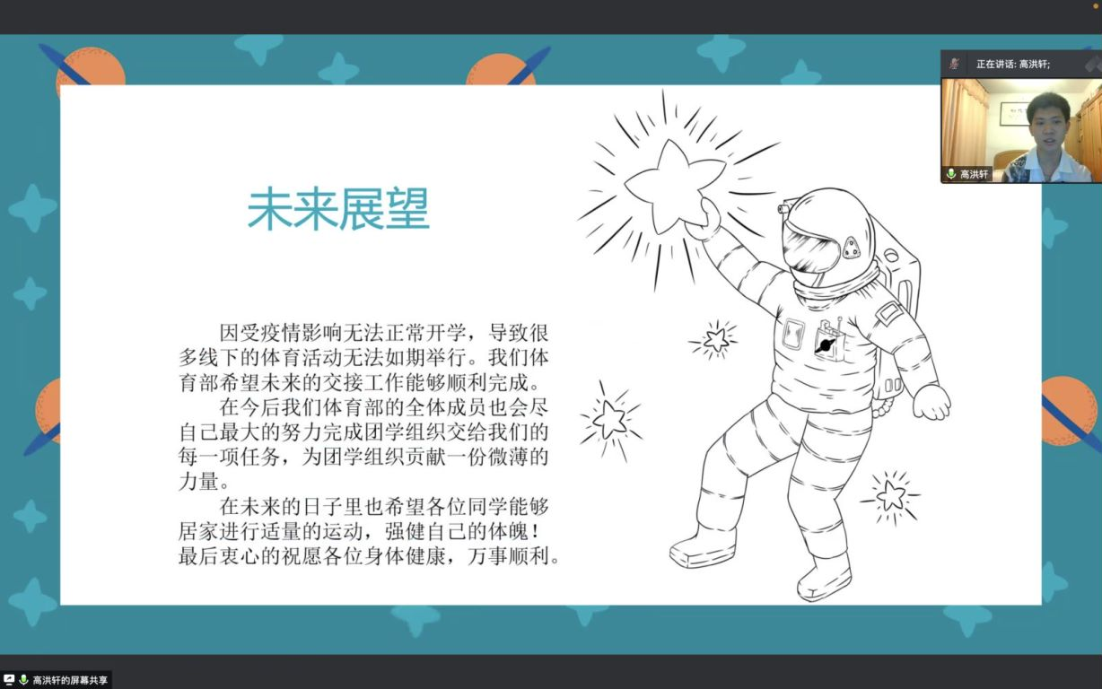 即使疫情的反复给各部门的工作带来了许多不便,但是在每位同学与老师的积极配合下,大家的工作都在线上有序进行着。希望疫情早日结束,我们能相聚于校园之中!