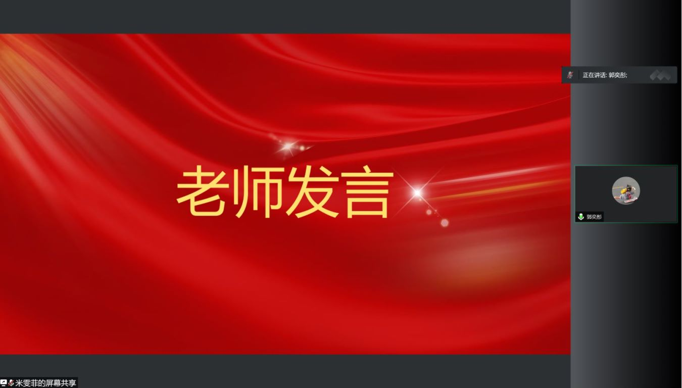 最后,党总支副书记高琼对各位同学表达了想念之情,并结合目前疫情形势对大家提出了希望与要求。同时,对各个部门的线上工作完成程度表达了极大的肯定,并对未来各部门工作能更上一层楼表明了期待。高琼表示希望与各位同学早日线下相聚,并对各位同学的线上学习与健康表示了关心。