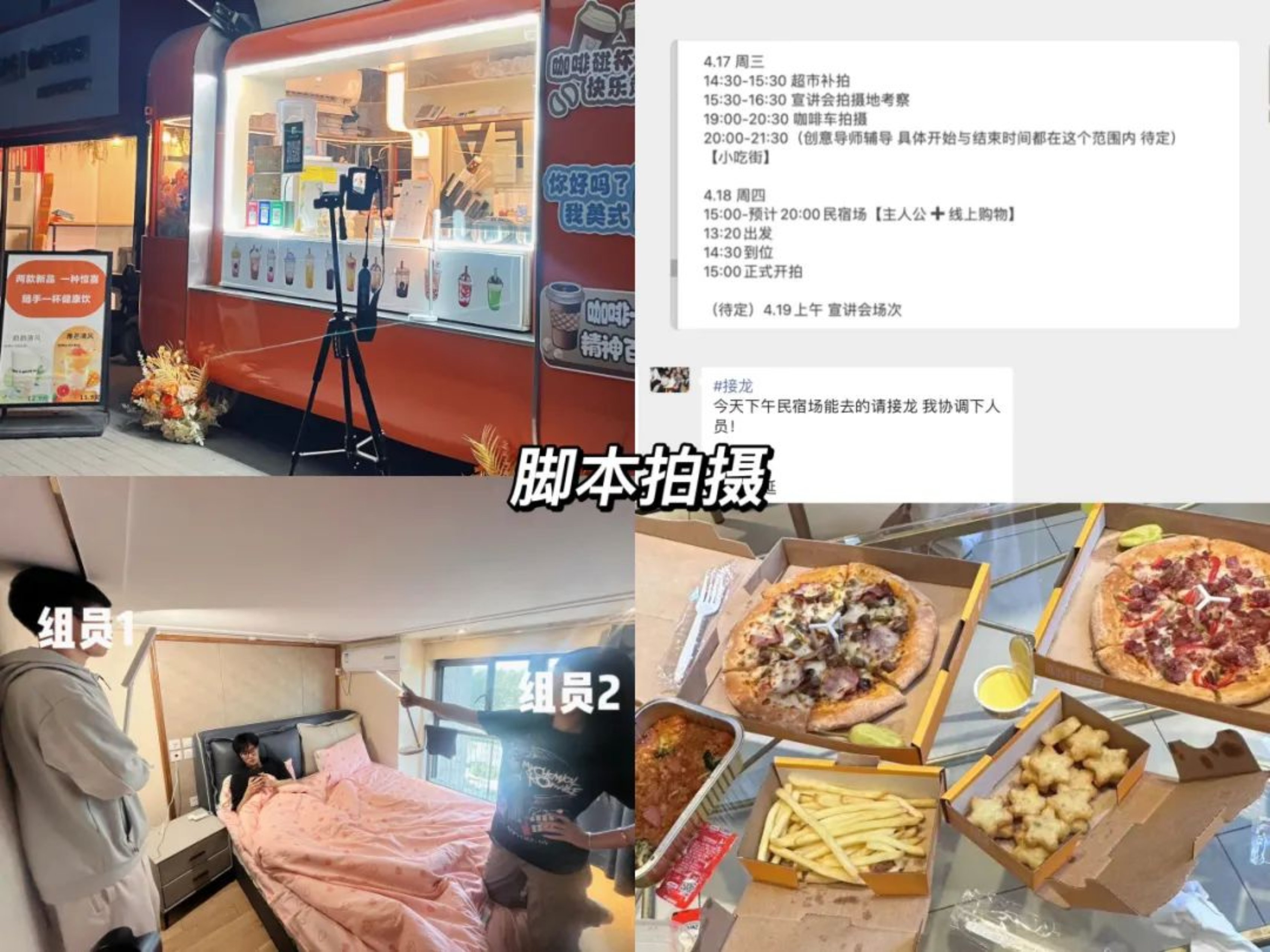 我们的脚本内容需要单独拍摄生活中的一些片段,这是首次从脚本、摄像到后期全都独立完成的广告作品。我们不仅需要和每位所涉及的人员进行沟通与协商,在拍摄过程中还常常面对实地拍摄与设想的差别,需要及时应对,保证进度正常...短短半分钟、四场戏的拍摄内容,我们用了近4天时间完成拍摄。虽然由于最后脚本内容调整,主题视频呈现中完全删除了所有这些自摄片段,但我们并不觉得遗憾,因为拍摄的过程对每一位同学来说都是弥足珍贵的经历。特别是民宿的戏结束后,我们一起坐在沙发上,从这个项目本身聊到各自对于未来的规划,从同学变成战友,大家一起做这件事的意义早已超越了课堂、作业本身。