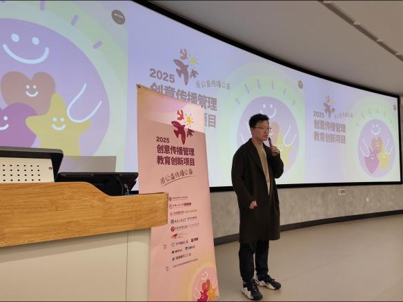 现场,2023级全体同学通过视频直播观看了2025年四项核心命题,公益项目涵盖“星球计划”、“圆乡村儿童足球梦”、“一个微笑守护计划”、“银杏家园”。今年命题设计延续“公益+数智化”特色,要求学生运用内容创意生产、数智化平台投放、大数据分析、AI创意工具等技术手段,在真实场景中完成从策略到落地的全流程实践,切实推动社会问题的创新性解决。