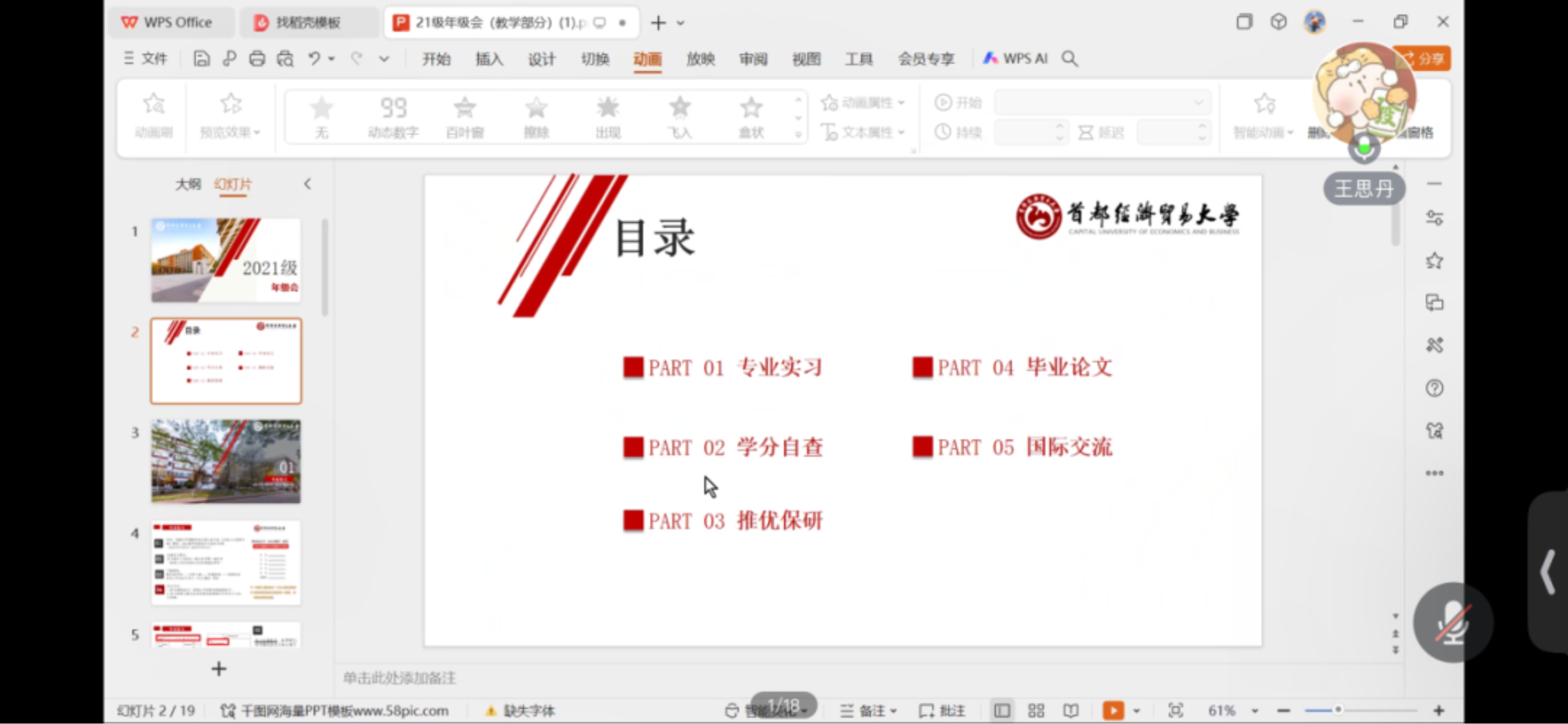 2024年3月13日晚上,2021级本科生年级大会于线上召开。参加本次会议的有党委副书记高琼、专职辅导员袁心玥、本科教务秘书王思丹以及2021级全体本科生。