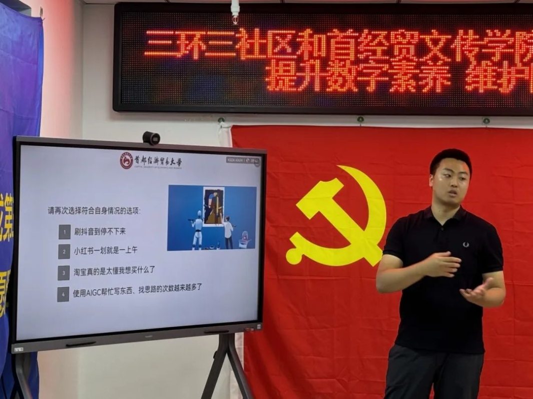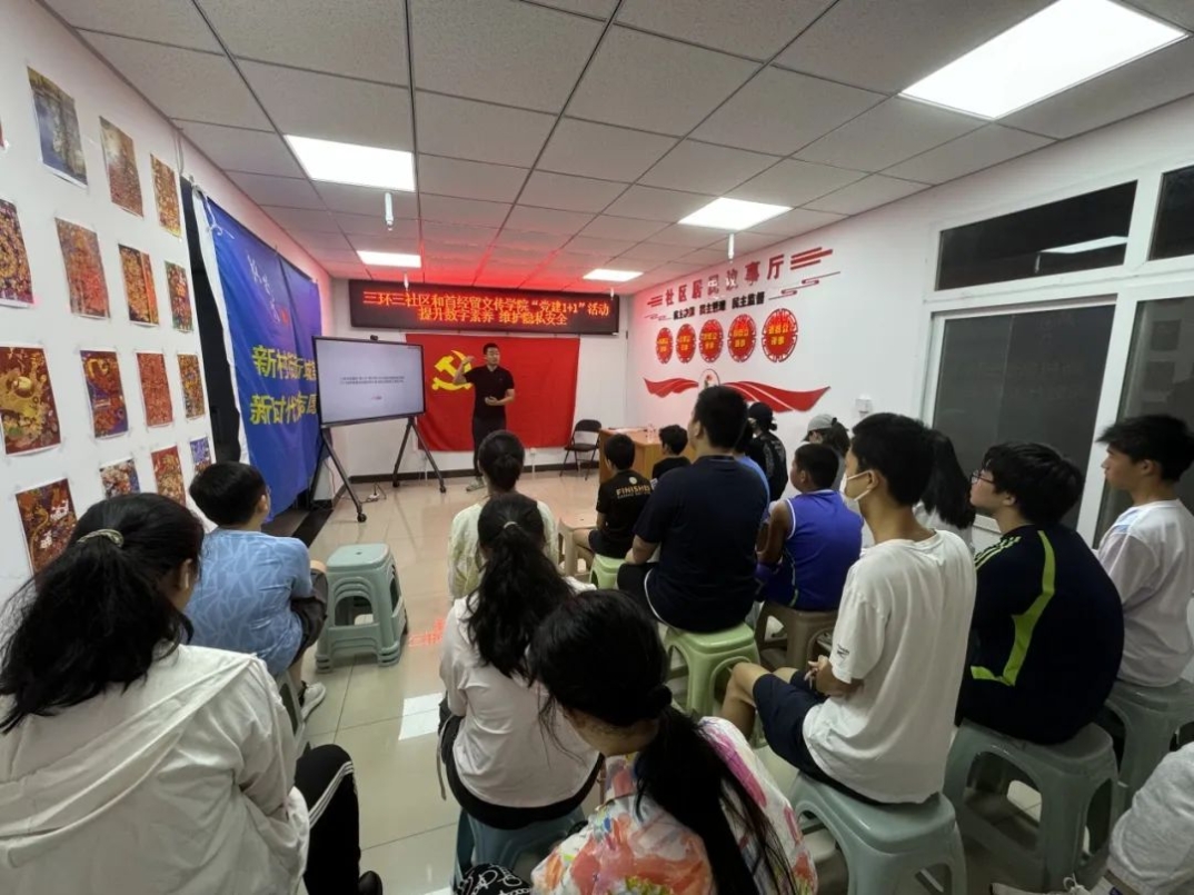 为学习贯彻党的二十届三中全会精神,贯彻落实习近平总书记关于党的建设的重要思想和建设教育强国的重要讲话精神,7月19日上午,哔咔漫画 哔咔漫画 广告与艺术联合党支部和北京市丰台区新村街道三环新城第三社区开展党建联建系列活动。本次活动由首经贸哔咔漫画 广告系教师李荃为三环新城居民做主题为“提升数字素养,维护隐私安全”的数字素养通识内容讲座。