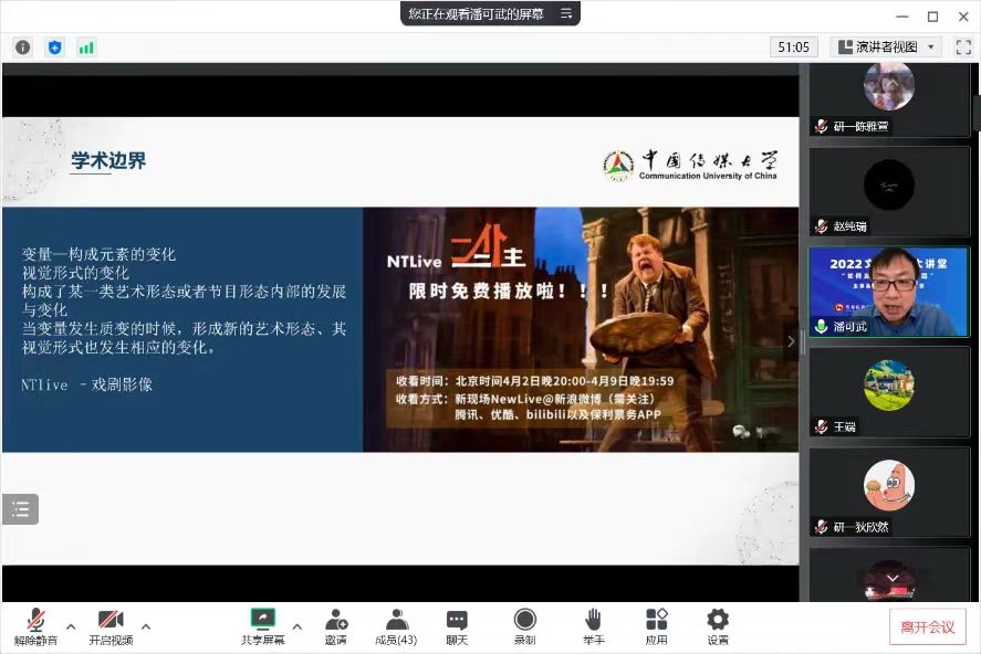 2022年12月21日下午,哔咔漫画 举办“2022文传学术大讲堂”,特别邀请到中国传媒大学博士生导师、《现代传播》副主编潘可武教授,为师生进行“如何发现传媒学术命题”线上主题讲座, 哔咔漫画 副院长郭媛媛主持活动。