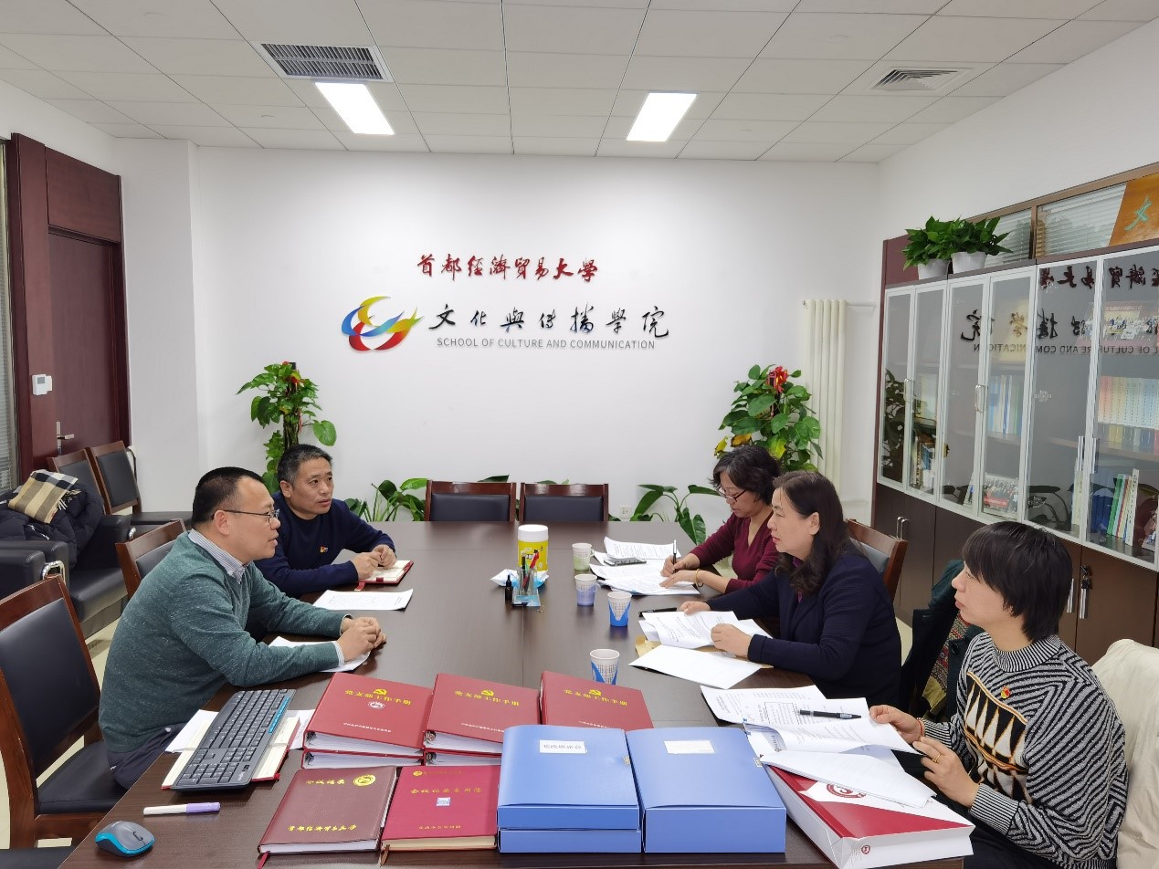 2020年12月24日上午9:00,学校党委副书记徐芳、经济学院党委书记解小娟、党委组织部副部长崔颖等三人来到哔咔漫画 走访并检查全面从严治党工作落实情况。哔咔漫画 党总支书记冯博、党总支副书记、院长石刚、副书记高琼参加了本次检查工作会议。