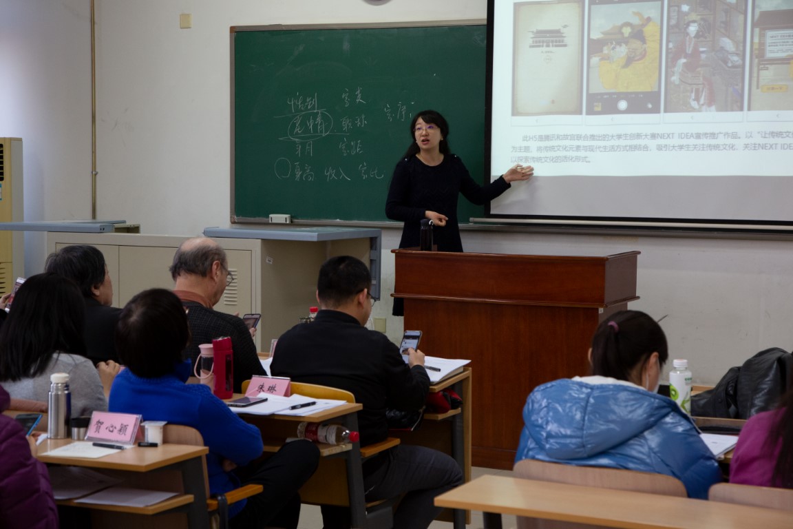 比赛采取教案评比与现场教学展示相结合的形式。本次参赛的青年教师来自传播学、广告学、汉语国际教育和艺术教研部,共有14人参加现场教学展示。每位教师现场讲授时间为12分钟,按照现场抽签的顺序决定讲课顺序。