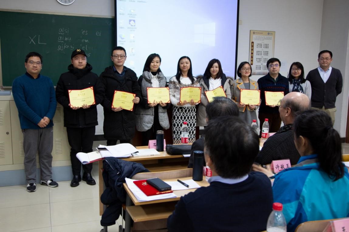 此次大赛,谭宇菲和戴新月获得一等奖,督导专家孙国平和焦志勇为她们颁奖。另有12名教师分获二等奖和三等奖,院长石刚、党总支书记冯博和各系部主任分别为他们颁奖。