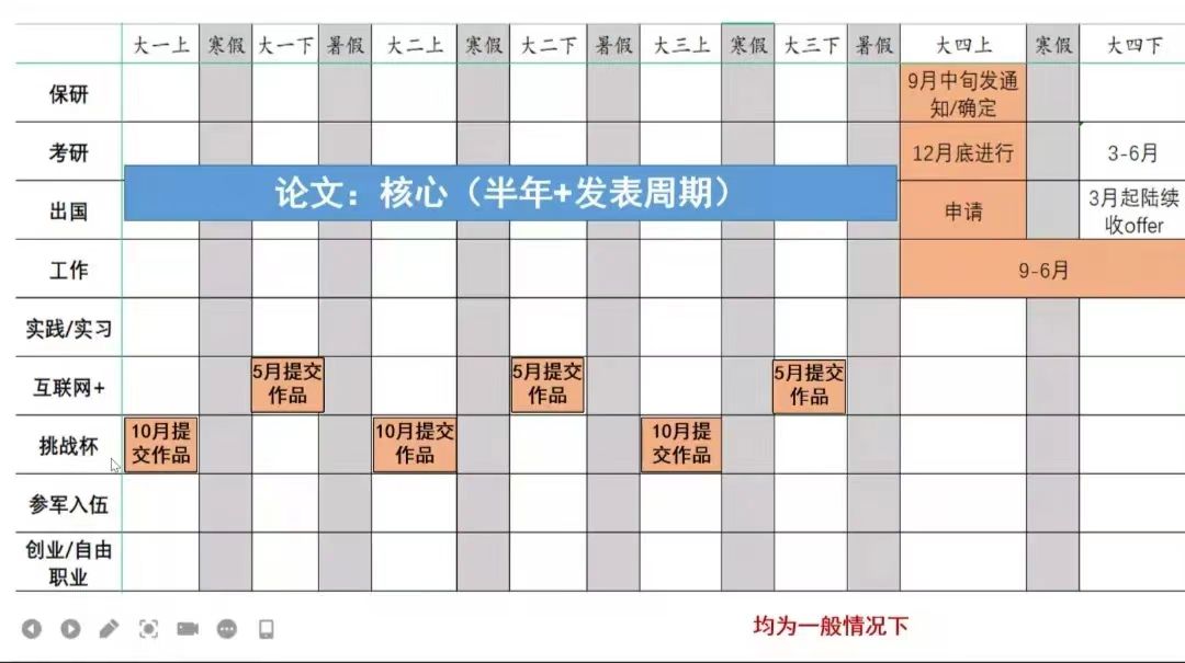 高琼老师以不同目标为坐标制作了精细的四年计划表,与同学们进行了具体、深入地交流,使同学们认识到尽管最终选择的毕业去向可能不同,但在大学的四年时间中,很多时期需要做的准备是类似或相同的,因此大学的各个阶段都需要合理规划。
