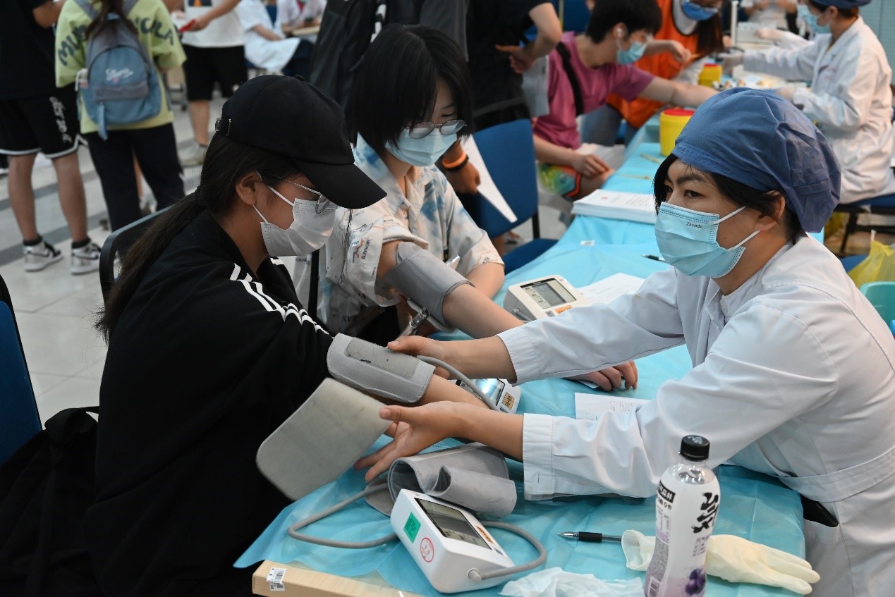 献血过程中,志愿者们认真体贴,同学们积极配合,工作人员敬业负责使得活动现场井然有序,助力献血活动顺利进行。