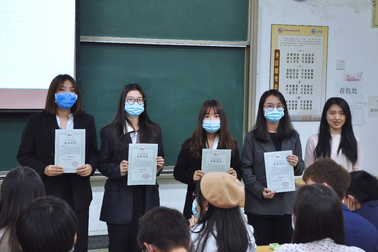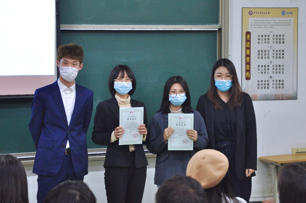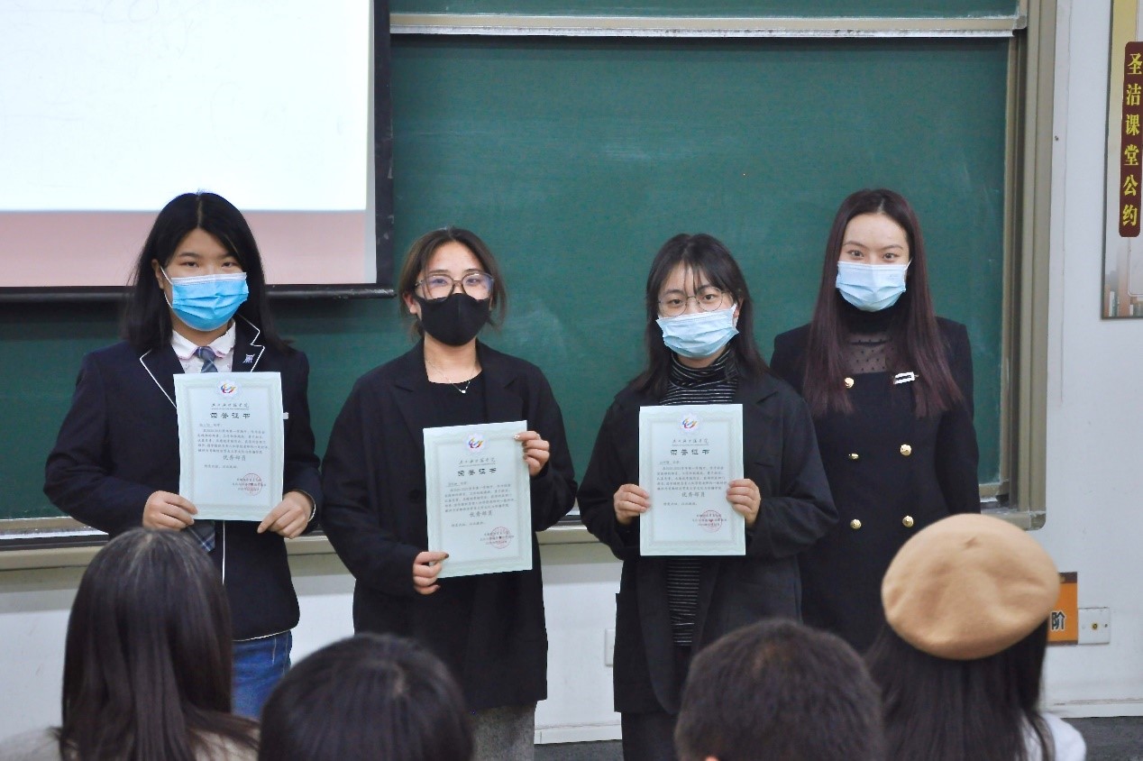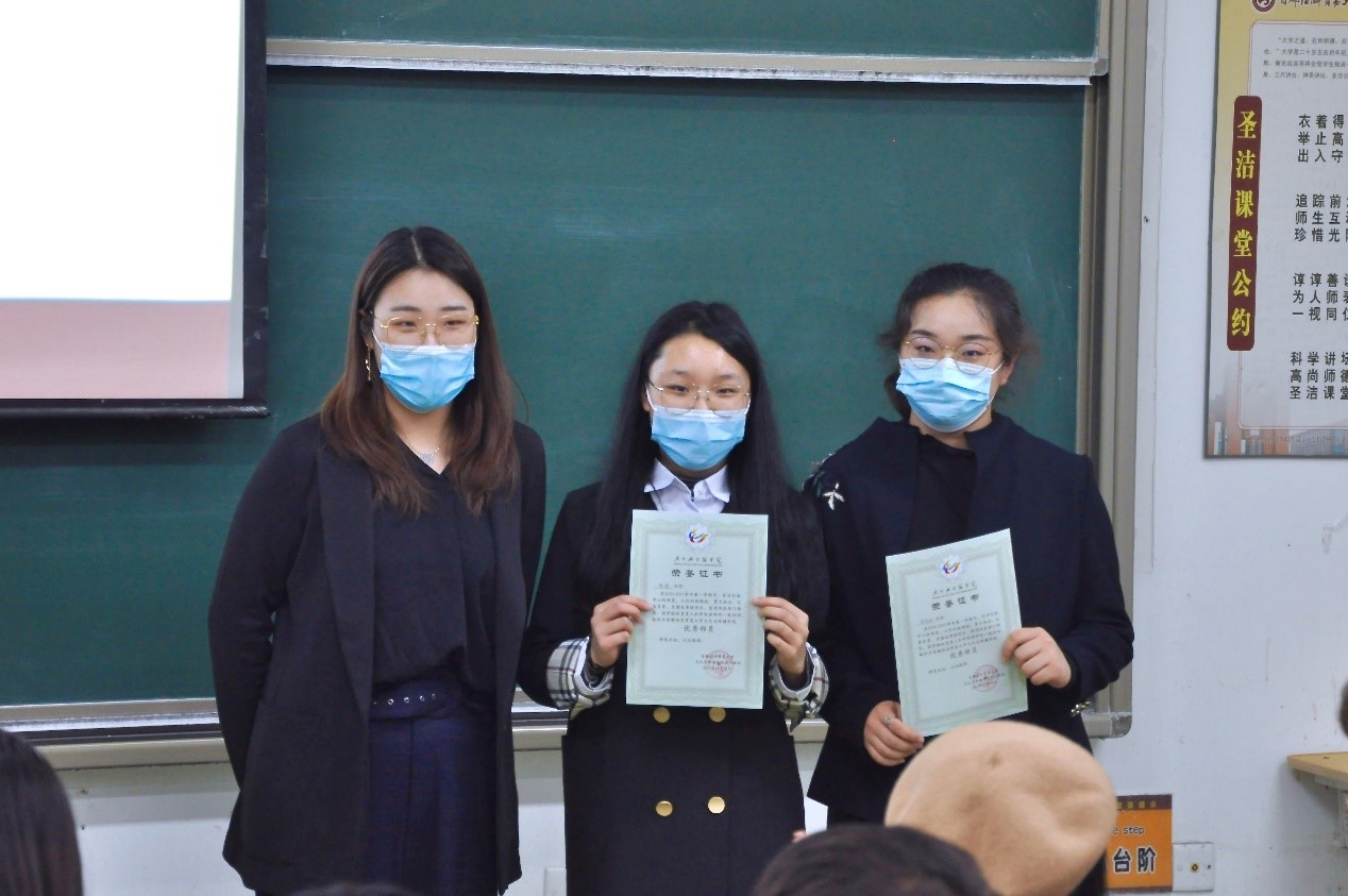 大会第二项,由党总支副书记高琼、分团委书记郭奕彤和兼职辅导员贺琦颁发本学期优秀部长证书。本学期各部门工作进展顺利,完成度高,这与各位部长的辛勤付出是分不开的,在此对优秀部长进行表彰。