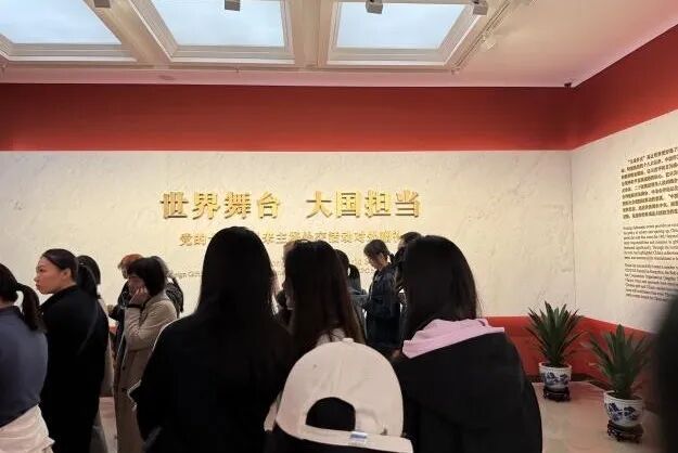 在“大道同行 命运与共”主展区及“世界舞台 大国担当”“缤纷世界 文明互鉴”专题区,师生党员驻足细观670多件(套)外交礼品、40余幅历史照片及近百件文献资料。从阿联酋金孔雀到哈萨克斯坦民族服饰,从“丁丁历险记-蓝莲花”瓷偶到中国海南椰雕……众多国礼展品生动呈现中国外交历程,让师生深刻感悟“独立自主和平共处”到“推动构建人类命运共同体”的实践跨越,领会中国外交的智慧与担当。