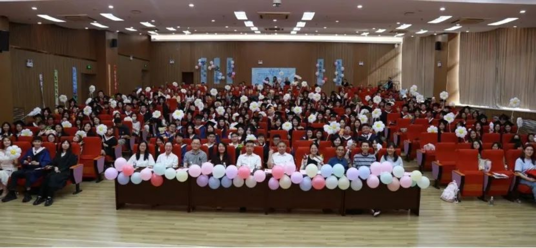 典礼在一段充满回忆的暖场视频中拉开序幕,视频带领全场师生重温了同学们在校园中的青春时光,那些共同的记忆为毕业典礼增添了一份温暖与感动。