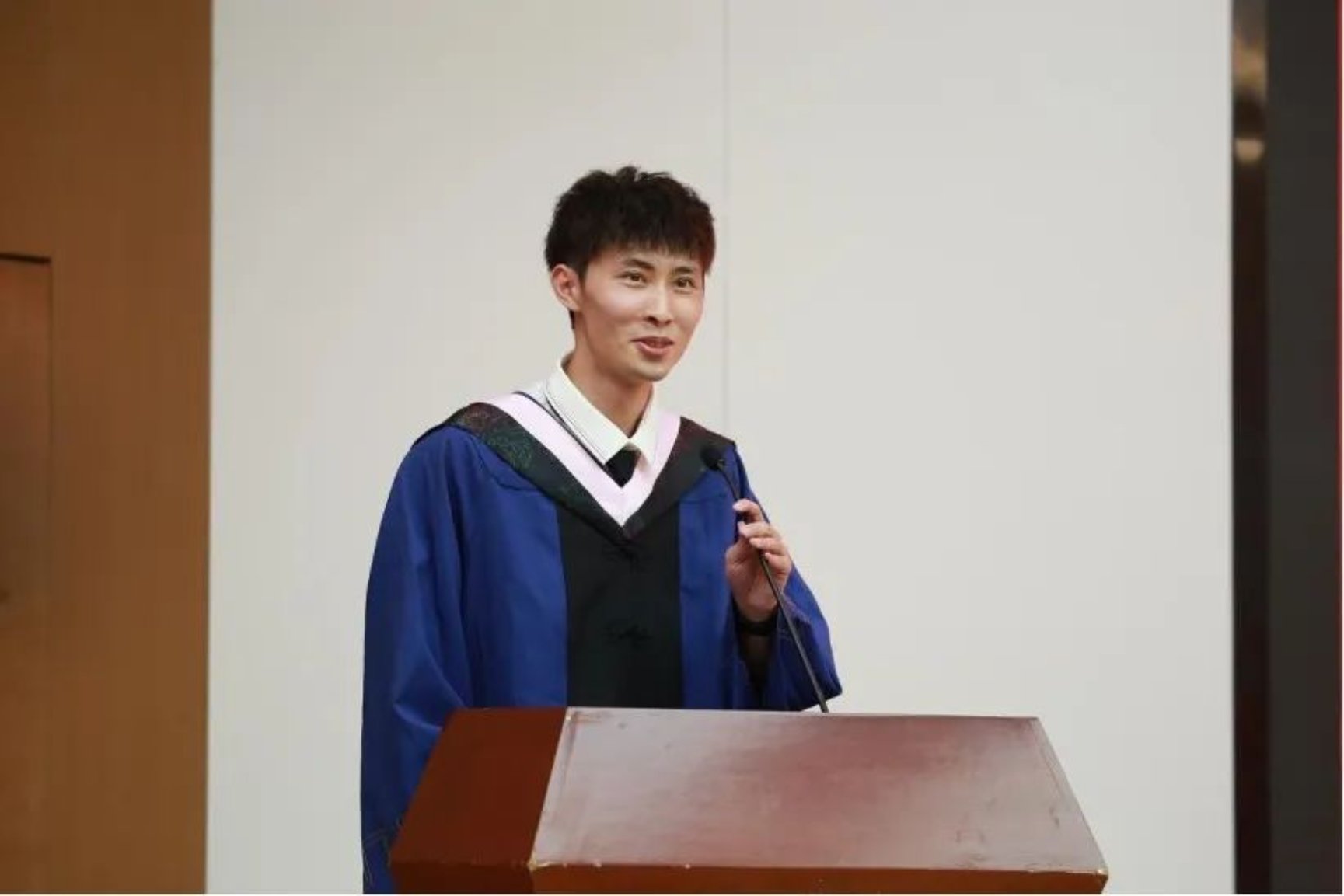 硕士毕业生代表刘嘉量以细腻的笔触回溯了三年读研时光:从“终于下课了”的期盼到“竟然毕业了”的感慨,从导师指导毕业论文的严谨到同窗熬夜完成小组作业的情谊,字里行间满是对大学时光的不舍与留念。最后,他深情表达了对学院、老师、同窗的美好祝愿。