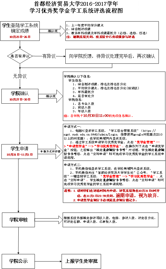 学习优秀奖学金请务必按照下图所示时间节点申请,逾期则视为放弃申报。