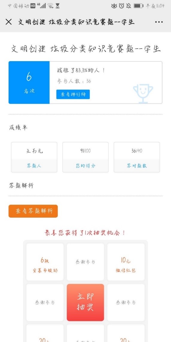 5月23日,哔咔漫画 党总支分享了有关垃圾分类知识的竞赛题目40道,本科生党员们答题热情高涨,纷纷转发答题并在微信群里互动讨论,上网搜索学习各种垃圾分属哪一类,还对照着小区橱窗内的宣传海报进行了深入了解。垃圾分类竞赛活动增强了大家对垃圾分类知识的了解,让“绿色、低碳、环保”的理念深入人心。本科生第一党支部党员刘琳说:“通过填写垃圾分类知识竞赛题,深深感受到自己在垃圾分类方面的知识还欠缺得很多,还有很多题目不确定甚至答错,这说明在平时还应该多多关注北京市垃圾分类相关规定,通过多种形式了解垃圾分类标准,锻炼提升自己垃圾分类的能力,起好党员的先锋模范带头作用,真正践行垃圾分类,党员先行!”
