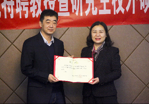 随后,冯博对到场的校外导师情况作了简介。徐芳为到场导师颁发特聘教授和校外导师聘书。