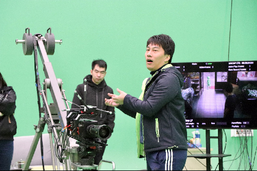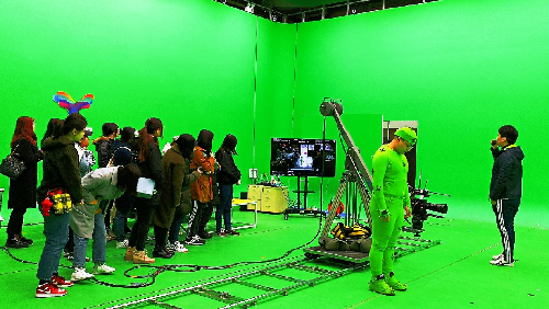 随后,同学们进入艾沃次世代数字片场。在国福亲自带领、讲解下,师生们看到了最新的数字影视制作设备,置身在不同于传统摄影棚的数字影视创作、制作环境,趣味盎然、兴致勃勃参观、体验了《疯狂的外星人》《刺杀小说家》和《熊出没》等影片虚拟拍摄环节和数字制作过程。看绿幕前身穿感应设备的演员,如何就成为了视频中同步运动的动画人物;看站在现场的老师、同学,如何出现在虚拟影片场景里;看同学如何在视频中与大黄蜂动画人物面对面拳击……混合现实技术能大幅度减少影视制作周期、人力与成本,颠覆性改变影视产品样态与形式、制作内容与环节、产业面貌与格局,这让师生们在感受技术最新发展和有待焕发的巨大能量之余,也引发了对传播行业未来、社会文化变迁的更多思考。