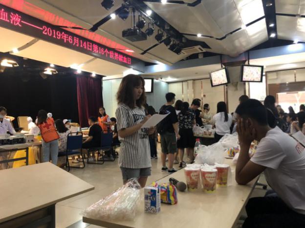 5月30日早七点半,哔咔漫画 的志愿者们提前来到大学生活动中心,为哔咔漫画 献血的同学发放营养早餐。辅导员尹可心老师为同学们讲解献血相关注意事项。