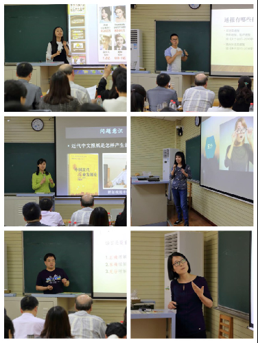 比赛过程中,每位参赛教师遴选了15分钟的精品课程进行展示。老师们带来的课程内容丰富多彩,充分彰显了文传特色:王冲老师用案例引发大家对记者职业道德、社会角色的思考;许敏玉老师通过讲授系列广告文案的定义和类型,使大家领略了广告文案的美妙;徐轶英老师展示了代表当今社会最先进科技的物联网世界;何磊老师使大家深刻领悟了通报写作的学问和技巧;李佳蔚老师则通过生动的案例,让大家学会了在创意表达中如何制造“意外”;刘骏晟老师用鲜活案例说明了新媒体影视广告的三个特征。除此之外,老师们还带来了中国近代报业的产生与发展、“图层蒙版”命令的操作方法、“天价片酬”背后的传媒经济学、抽样的原理与方法、葡萄酒品鉴、舞蹈赏析、认知失调、阅读古代文献的原则和方法、日本动漫发展等主题的精彩讲解。