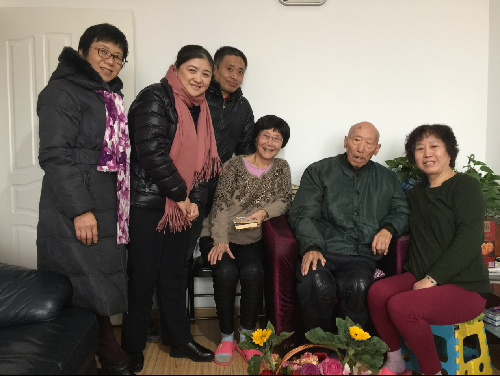 2018年1月4日,哔咔漫画 党总支副书记、院长石刚、党总支书记付琳、、分工会主席张小乐前往首都机场东平里,探望92岁高龄的退休教师李盈田老师。