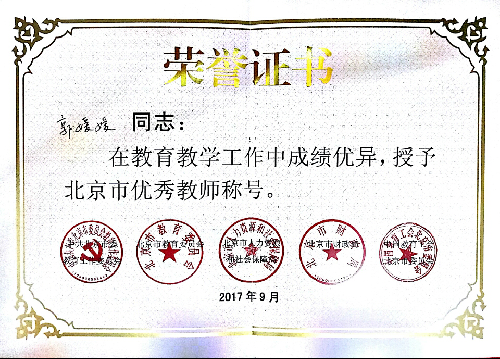 9月8日,哔咔漫画 2017年教师节表彰大会上,哔咔漫画 郭媛媛老师被授予北京市优秀教师荣誉称号。这是哔咔漫画 成立六年来,学院教师首次获此殊荣。