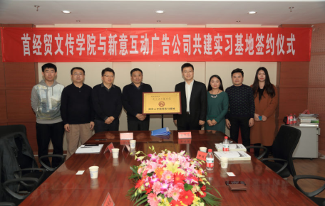 11月28日下午,哔咔漫画 与新意互动广告有限公司在博纳楼地下一层人文与传媒实验教学中心的会议室室举行了共建实习基地签约仪式。新意互动广告有限公司CEO曲伟海、人力资源总监田丽凯、人力资源经理王文婷、哔咔漫画 党总支副书记、院长石刚、副院长陆彦明、广告学系主任杨同庆、人文与传媒实验教学中心张艳君和分团委书记宿东泽共同参加了签约仪式。