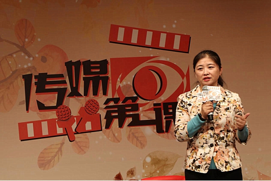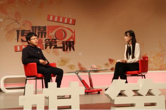 节目一开始,来自14级传播学专业的张丹作为主持人上台,在介绍了到场来宾后,她引出此次《传媒第一课》“答疑解惑”的节目主题,并依次请出作为特邀嘉宾的三位返校校友上台,向大家介绍经验、提出建议。