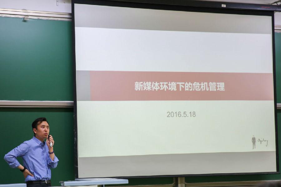 5月18日晚,文传大讲堂第五期——主题为“新媒体环境下的危机管理”的讲座于我校慎思楼201教室举办。本次大讲堂请到了在业界打拼多年,经验丰富,对于当今的公关有很深研究的业界权威人士——奥美公关公司副总裁李凯以及广告协会秘书长、广告门总裁劳博作为主讲嘉宾,与同学们畅谈新媒体环境下的危机公关以及品牌形象建设。