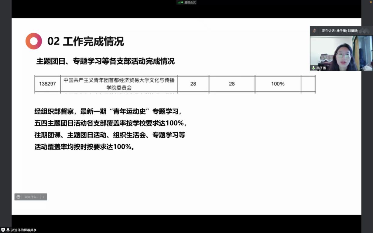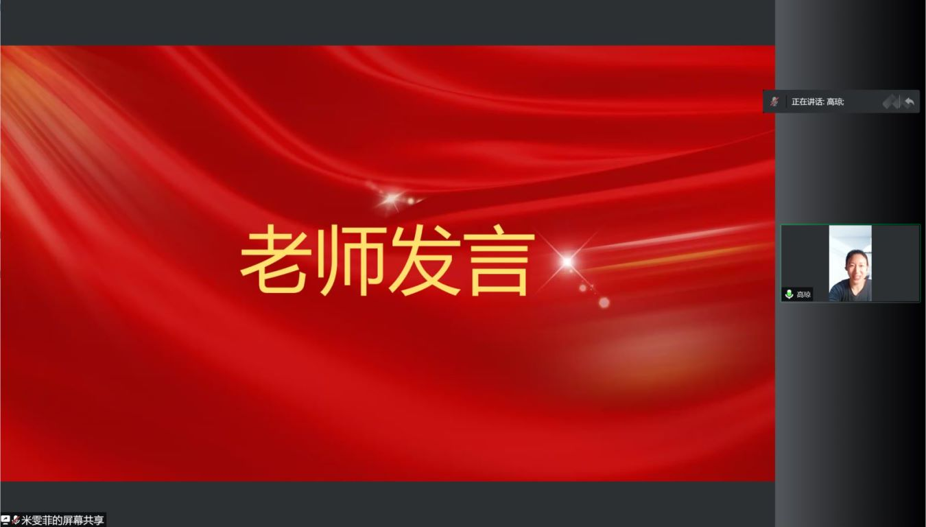 最后,党总支副书记高琼对各位同学表达了想念之情,并结合目前疫情形势对大家提出了希望与要求。同时,对各个部门的线上工作完成程度表达了极大的肯定,并对未来各部门工作能更上一层楼表明了期待。高琼表示希望与各位同学早日线下相聚,并对各位同学的线上学习与健康表示了关心。