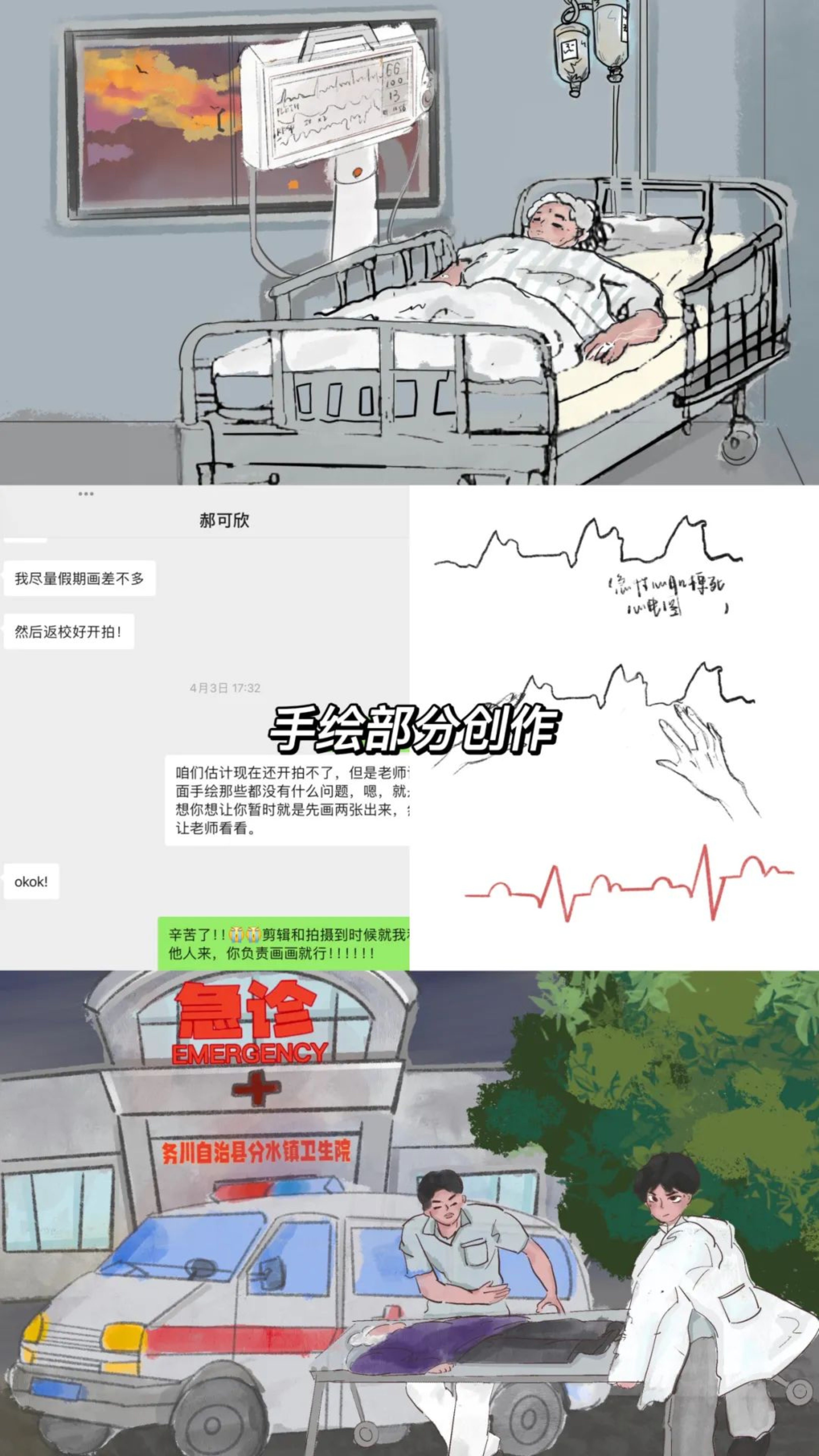 乡镇地区的急救站点稀缺,医疗设备的落后,医护人员数量以及技术水平无法满足民众需求……这些严峻的现实问题,让我们第一次迈出日常生活的舒适圈,亲身感知到到乡村急救事业的迫切性和重要性。希望能通过我们的创作,让大众真切地了解到乡村急救事业的艰辛,为乡村急救事业筹集善款,为那些坚守在乡村医疗一线的医护人员和亟需救治的村民带去一份希望。